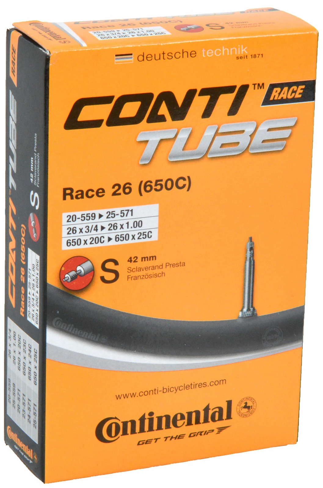 La chambre à air standard pour vélo de course de Continental offre le meilleur équilibre entre résistance au roulement et protection anti-crevaison et maîtrise sans peine les exigences du quotidien. La Race 26 avec valve Sclaverand est adaptée aux vélos équipés de pneus de 26″.