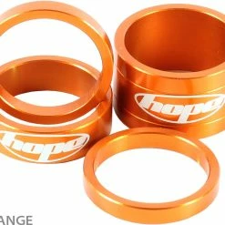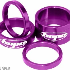 Le set d’entretoises ultraléger « Space Doctor » de Hope, fabriqué en aluminium et portant le logo Hope gravé au laser, comprend trois tailles différentes pour un réglage individuel de la hauteur.