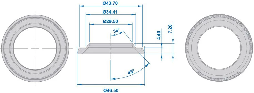 Adaptateur de cône de fourche réducteur de rechange de Ritchey pour jeu de direction 36° et pivot de fourche 1 1/8. Compatible uniquement avec la fourche Ritchy WCS Carbon Adventure Gravel.