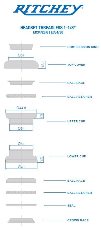 Caractéristiques du produit – Ritchey Fit Threadless Headset